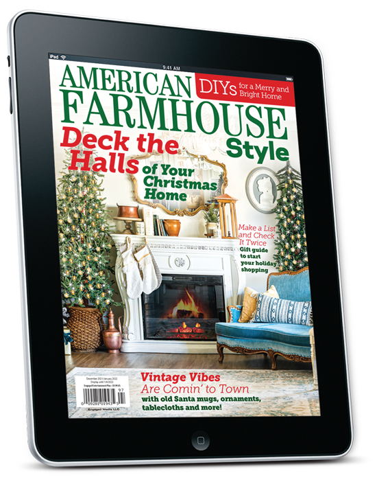 Ready to deck your halls? Our Christmas issue is here, and we're so ready for this festive season! From beautiful homes with pops and red and green to neutral noels and French-inspired country decorations, we have so much inspiration for you. Don't miss the cute vintage collectibles in this issue, from old Santa mugs to holiday tablecloths and French antiques. And you can include a few DIYs into your Christmas season this year too—try baking a hard cider apple pie, and make custom wood tags for your stockings. There's something for every farmhouse lover in this issue!